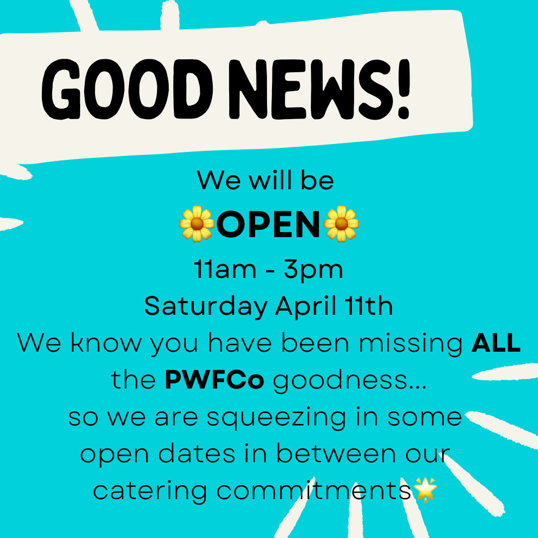 We will be OPEN on Saturday April 11th 11am - 3pm.